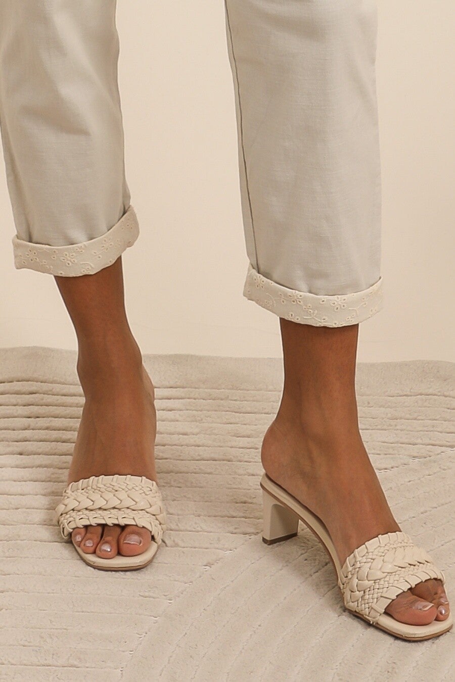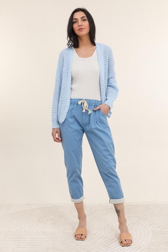 Pantalon uni élastiqué à la taille avec revers en dentelle à la jambe