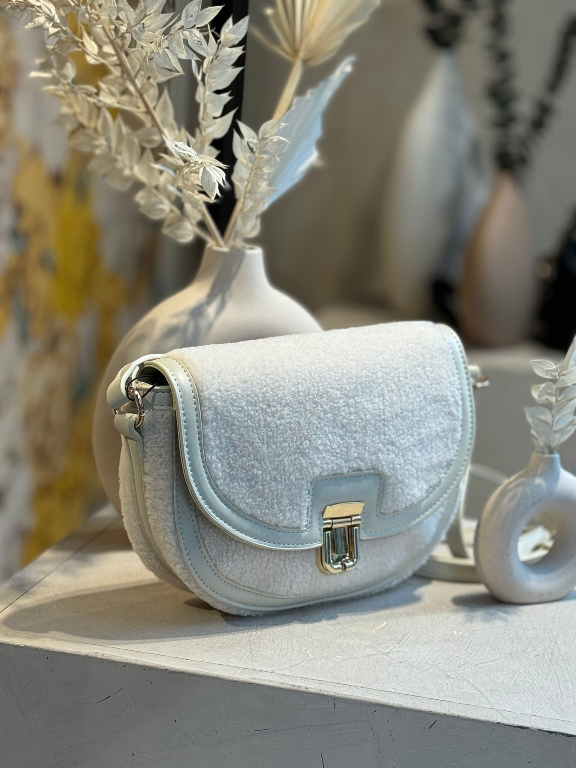 Pensé pour s’adapter à votre quotidien, le sac Teddy se porte facilement à l’épaule pour un look casual chic, ou en travers du corps pour une allure décontractée. Léger et agréable au toucher, il est parfait pour transporter vos essentiels tout en apportant une note cosy et tendance à votre style.