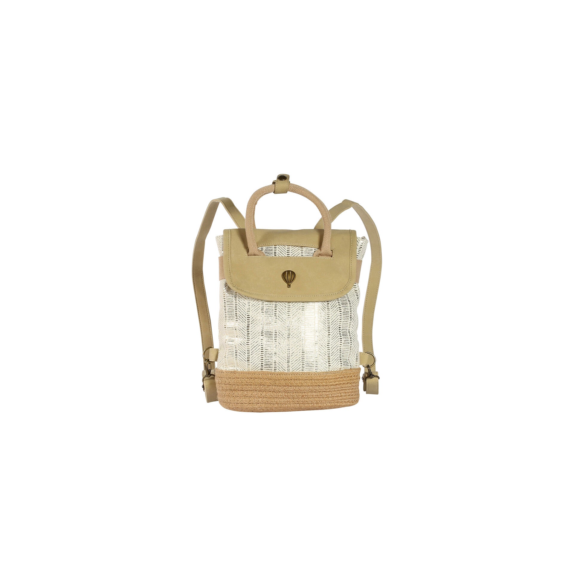 Son tissage délicat aux motifs géométriques, associé à des finitions en toile et en suédine douce, en fait un accessoire à la fois bohème et moderne. La petite touche en plus ? Son emblème montgolfière discret et élégant sur le rabat.