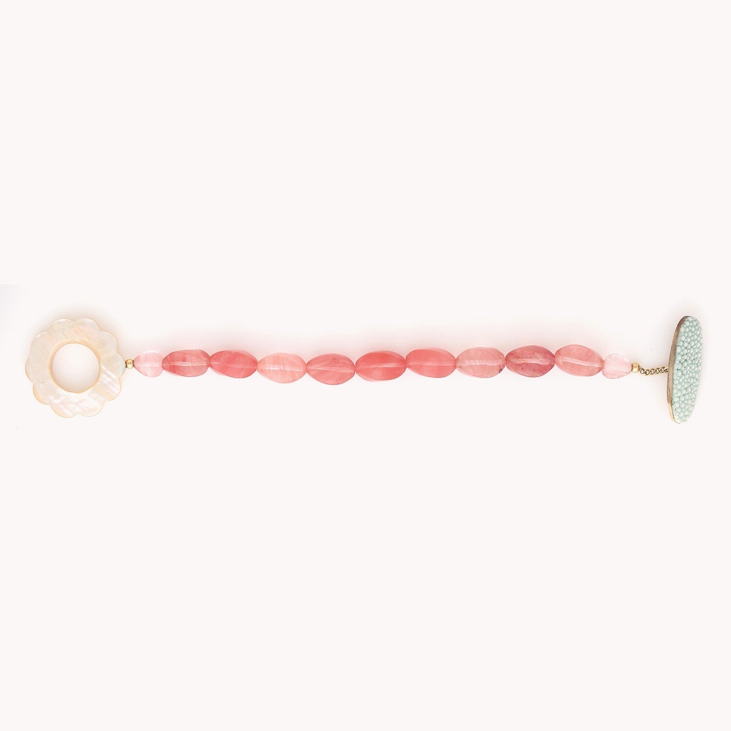 Les bijoux de la collection Pivoine mettent à l’honneur des matériaux délicats comme le galuchat texturé, le quartz cerise et la nacre rose. Chaque pièce, qu’il s’agisse d’un collier pendentif, de boucles d’oreilles ou d’un bracelet, offre un mariage parfait entre modernité et raffinement. Ces bijoux pastel, enrichis de gmelina et de laiton doré, sont idéaux pour ajouter une touche d’élégance naturelle et romantique à votre quotidien. Découvrez cette ligne poétique, où la texture unique du galuchat rencontre la douceur des tons roses et verts, pour des créations inoubliables.