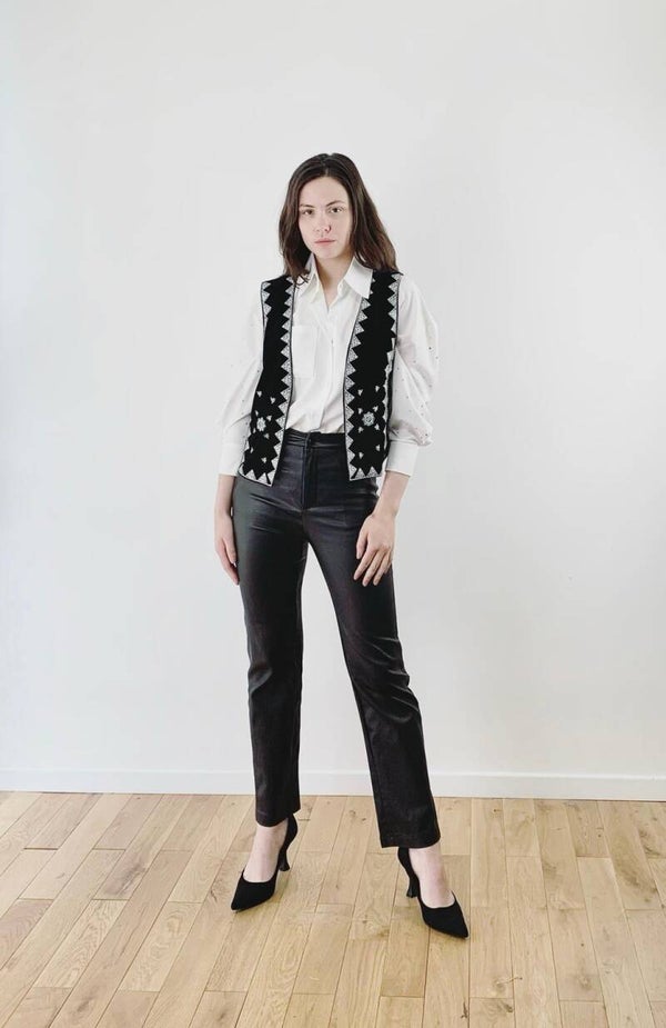 Gilet avec broderie en suedine