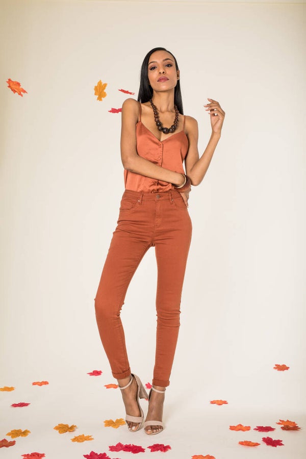 Jean slim femme, coupe ajustée, taille mi-haute, détails soignés. À porter pour un look chic et décontracté.