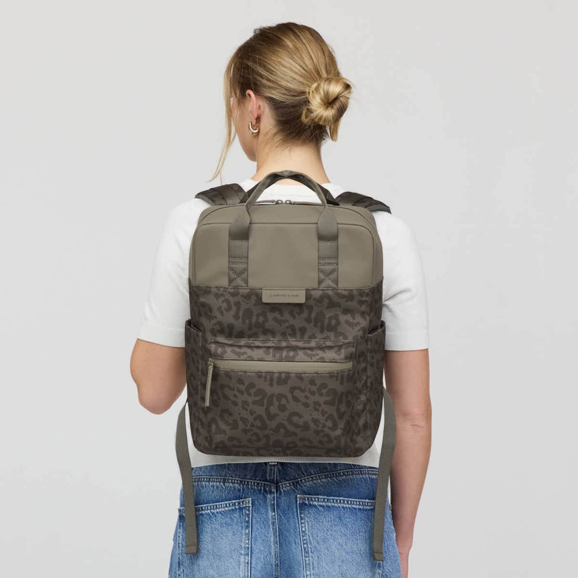 Deux pochettes sur les côtés, une poche avant zippée, poche antivol à l'arrière, poche intérieure zippée, deux autres rangements ainsi qu'un compartiment pour ordinateur portable et un autre pour tablette.