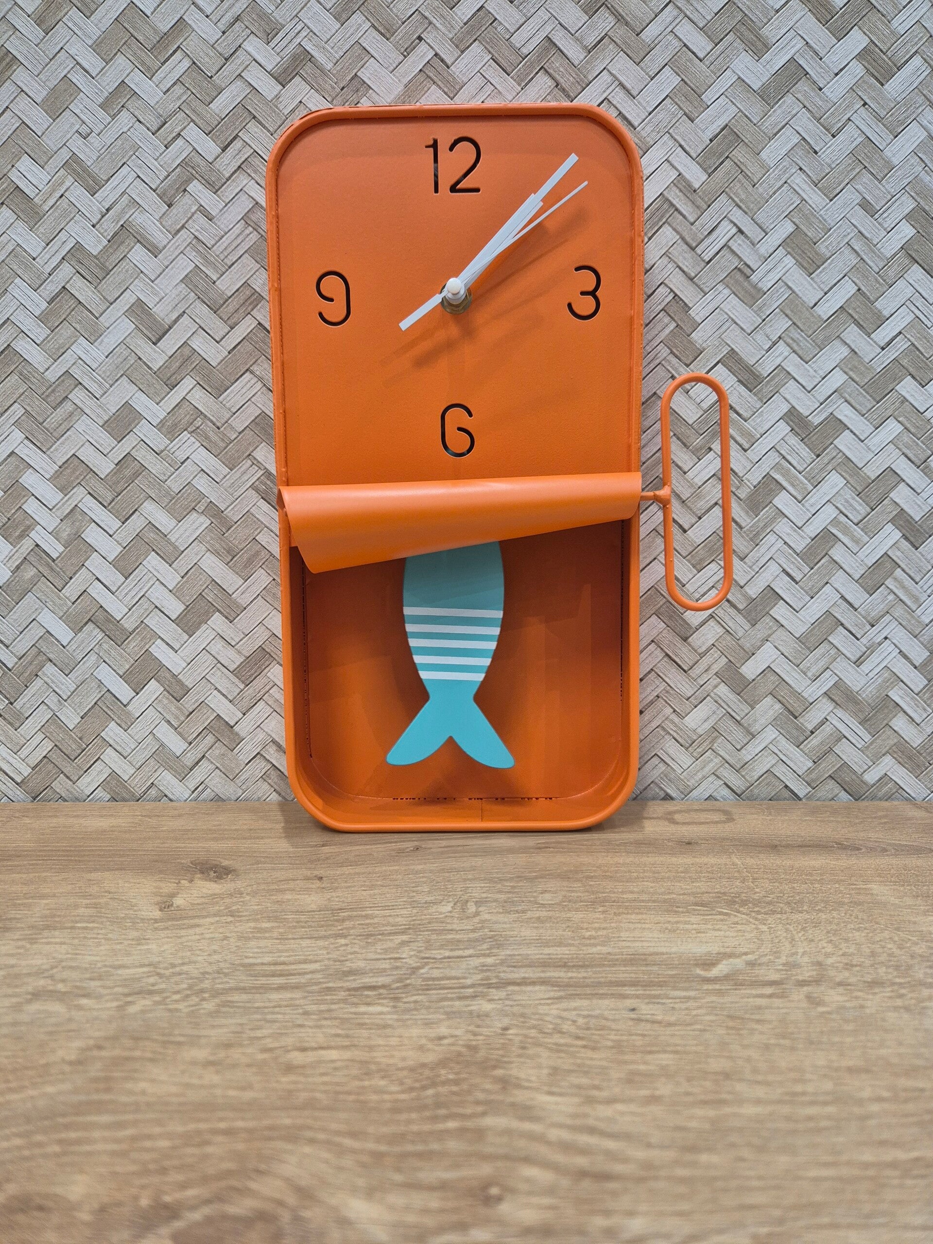 Apportez une note d’humour et de bord de mer à votre décoration avec cette superbe horloge murale “Sardine”, imaginée comme une boîte de conserve ouverte laissant apparaître un joli poisson coloré. Un clin d'œil déco aussi original que tendance, parfait pour les amoureux de l’univers marin.