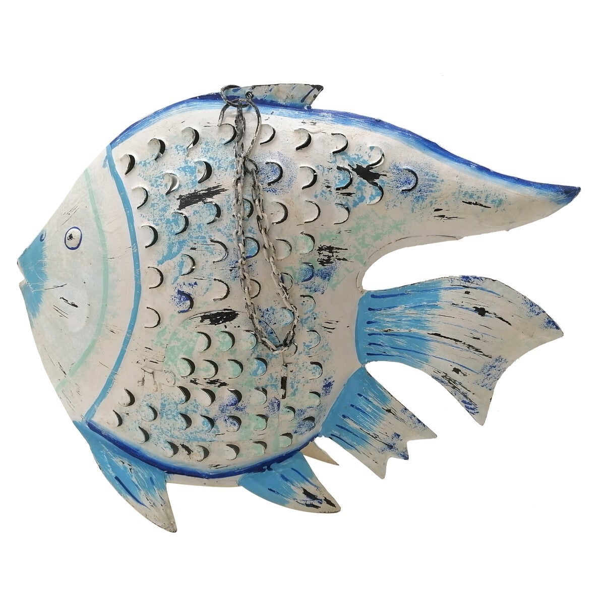 Créez une ambiance marine féerique grâce à ce Poisson Lanterne à suspendre, une pièce déco unique qui diffuse une lumière douce et poétique. Les petites perforations en forme d’écailles laissent passer la lumière, créant un jeu d’ombres délicat qui rappelle les reflets de l’océan au coucher du soleil.